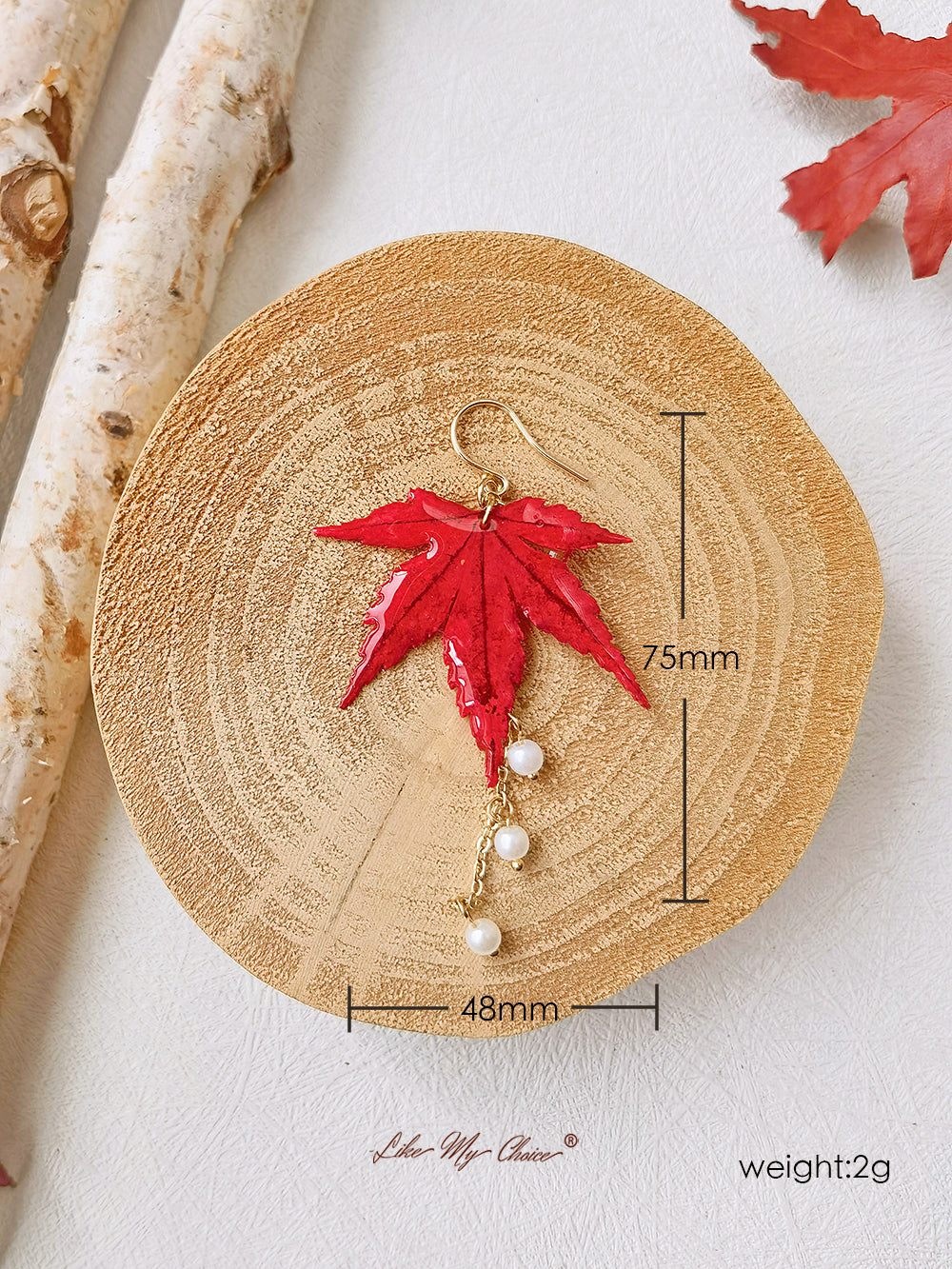 Sun Catcher Maple Leaf Resin Gold Pearl Earrings