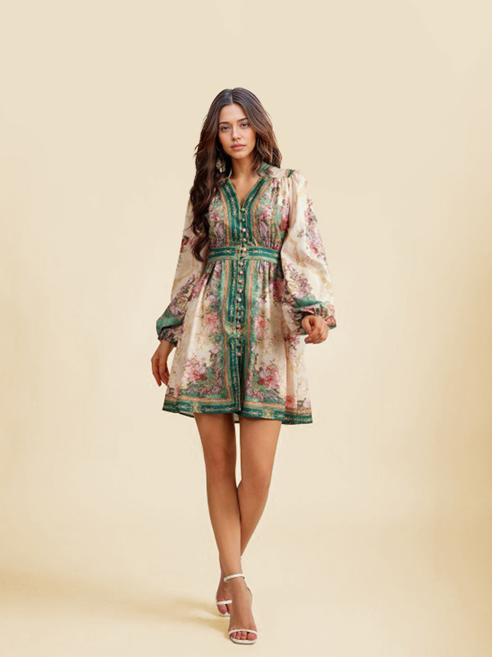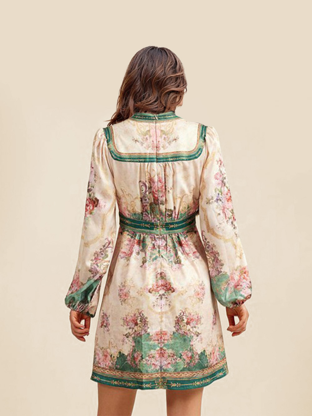 Retro Palace Style V-Neck Printed Mini Dress